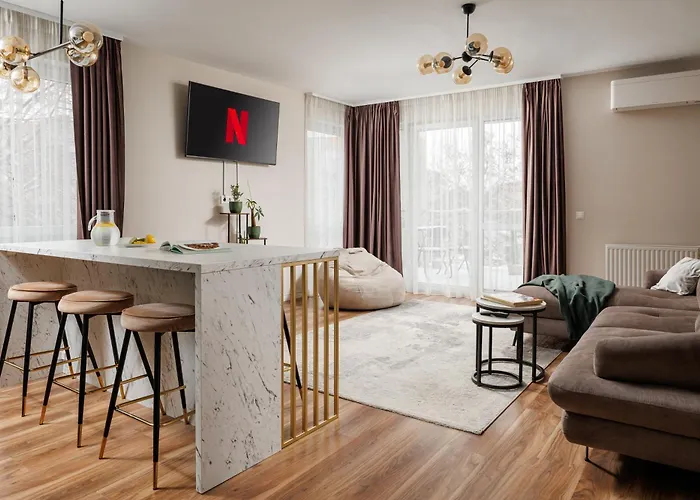 The spacious 82 m² Da-Li Residence 2 Brasov is located in Brasov, about a 10-minute ride from the Rope Street, and pampers guests with a sauna. 3.9 km from the 1-bedroom apartment you will find the Belvedere.